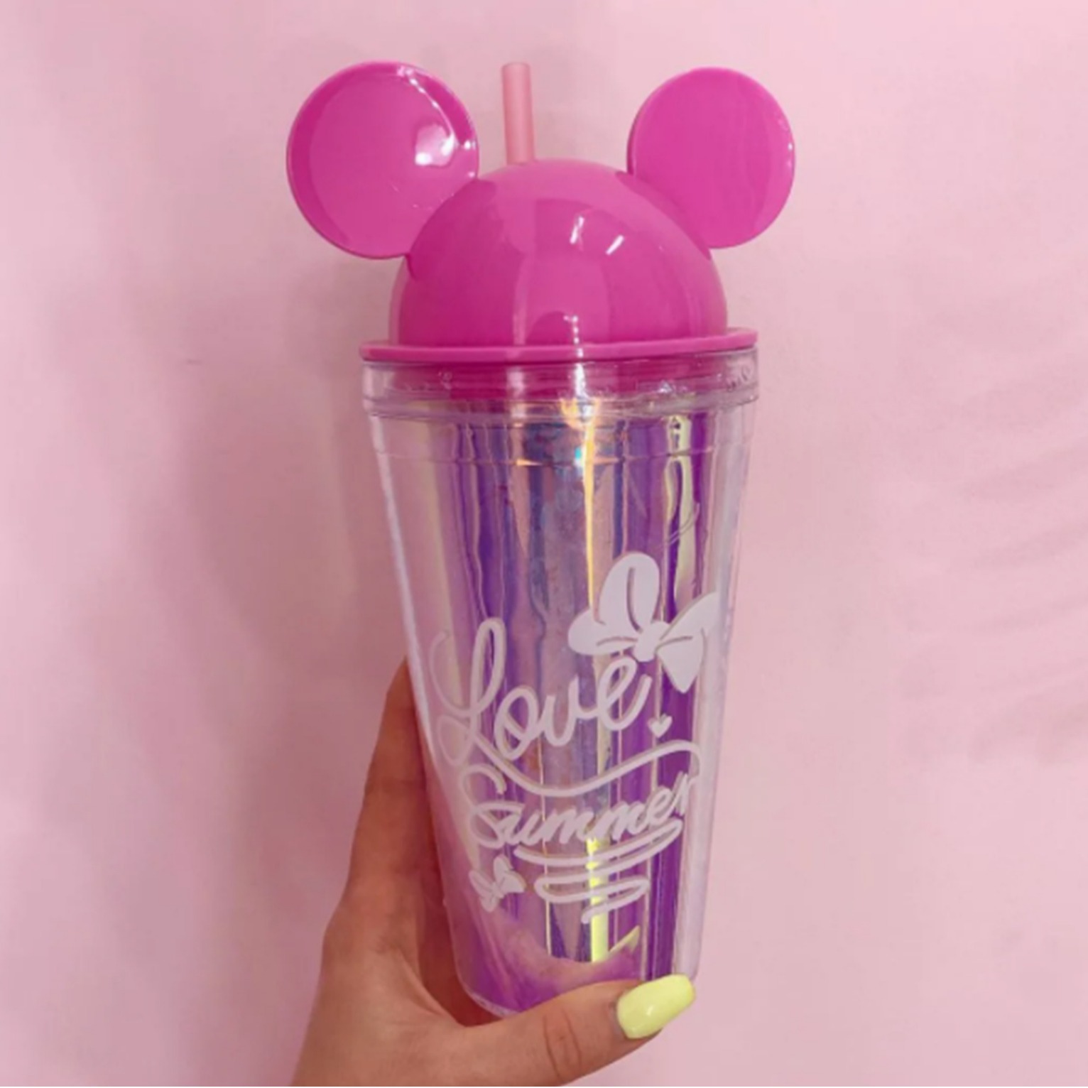 米老鼠450,ml双层塑料老鼠耳朵盖塑料吸管杯贴钻吸管杯