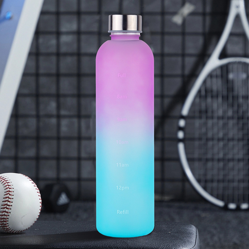 アマゾンの人気1Lグラデーション色tritan材質アウトドアスポーツカップ携帯型ロープフィットネス宇宙カップ