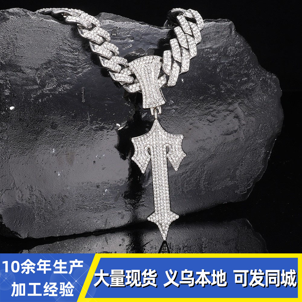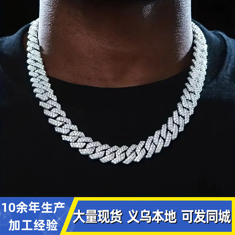 12mmキューバチェーンクロスボーダー軽豪華ファッション百合合金ドリル男女同金スキューバネックレス源工場