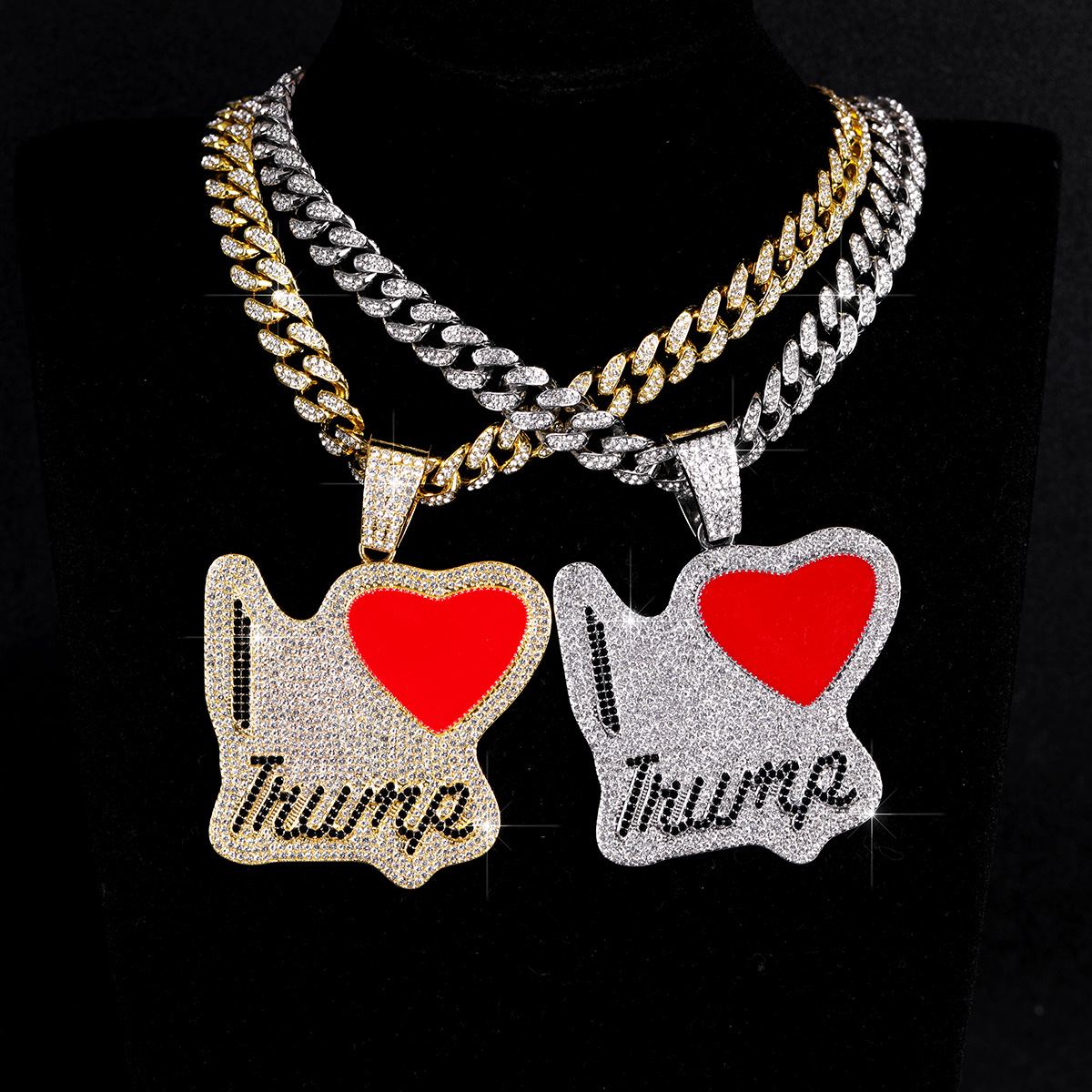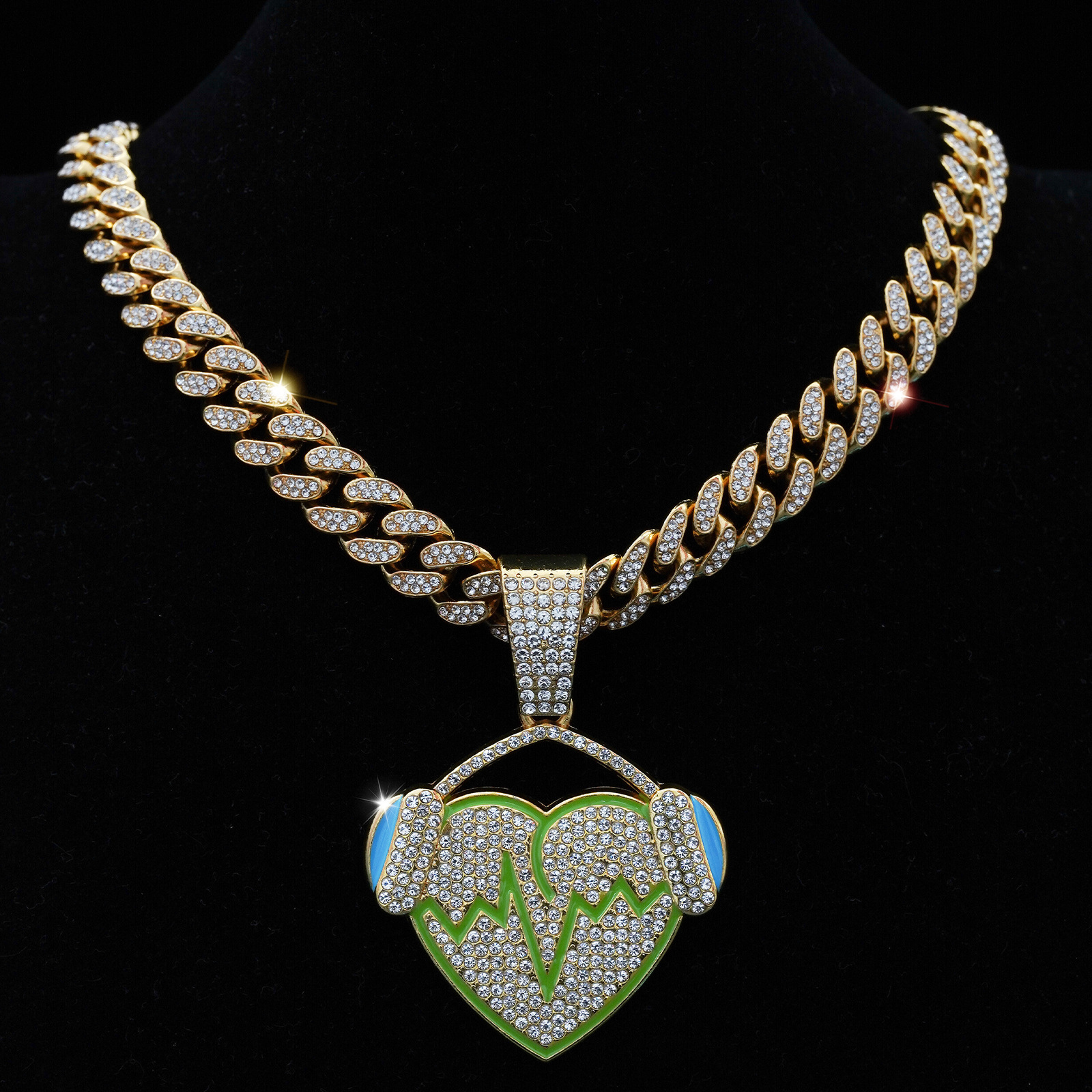 クロスボーダーヒップホップ新製品ラブクラッシュハートフルダイヤモンド合金ペンダントヒップホップキューバチェーンネックレスメンズネックレス