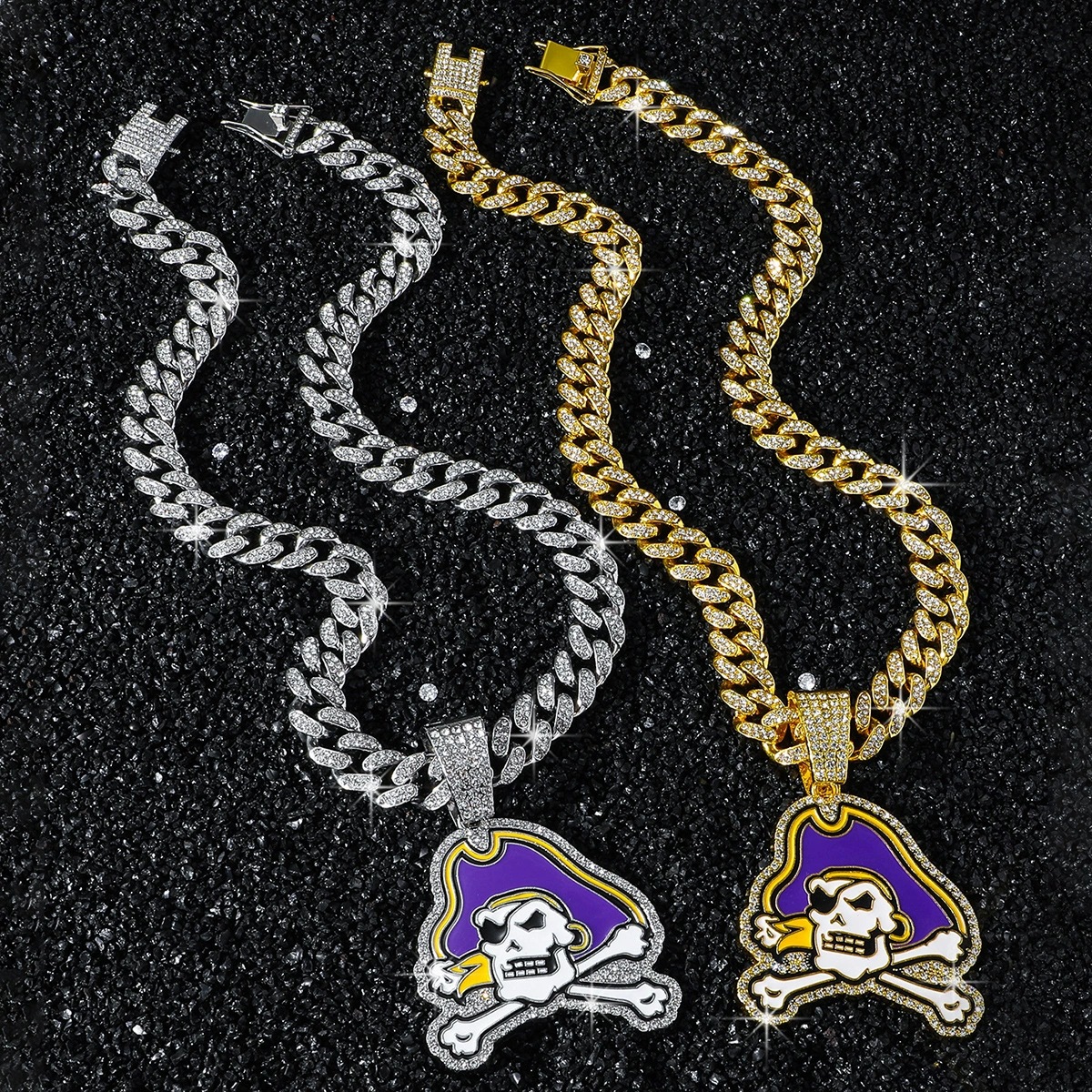 クロスボーダージュエリーボーイズ多用途ヒップホップネックレスファッショナブルなフルダイヤモンドスカル海賊ペンダント卸売