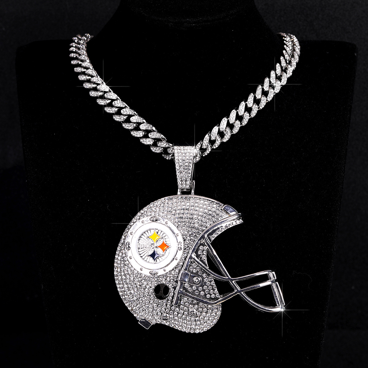 新しいラグビーキャップペンダントヒップホップダイヤモンドネックレスクロスボーダーヘルメットスポーツペンダント工場卸売