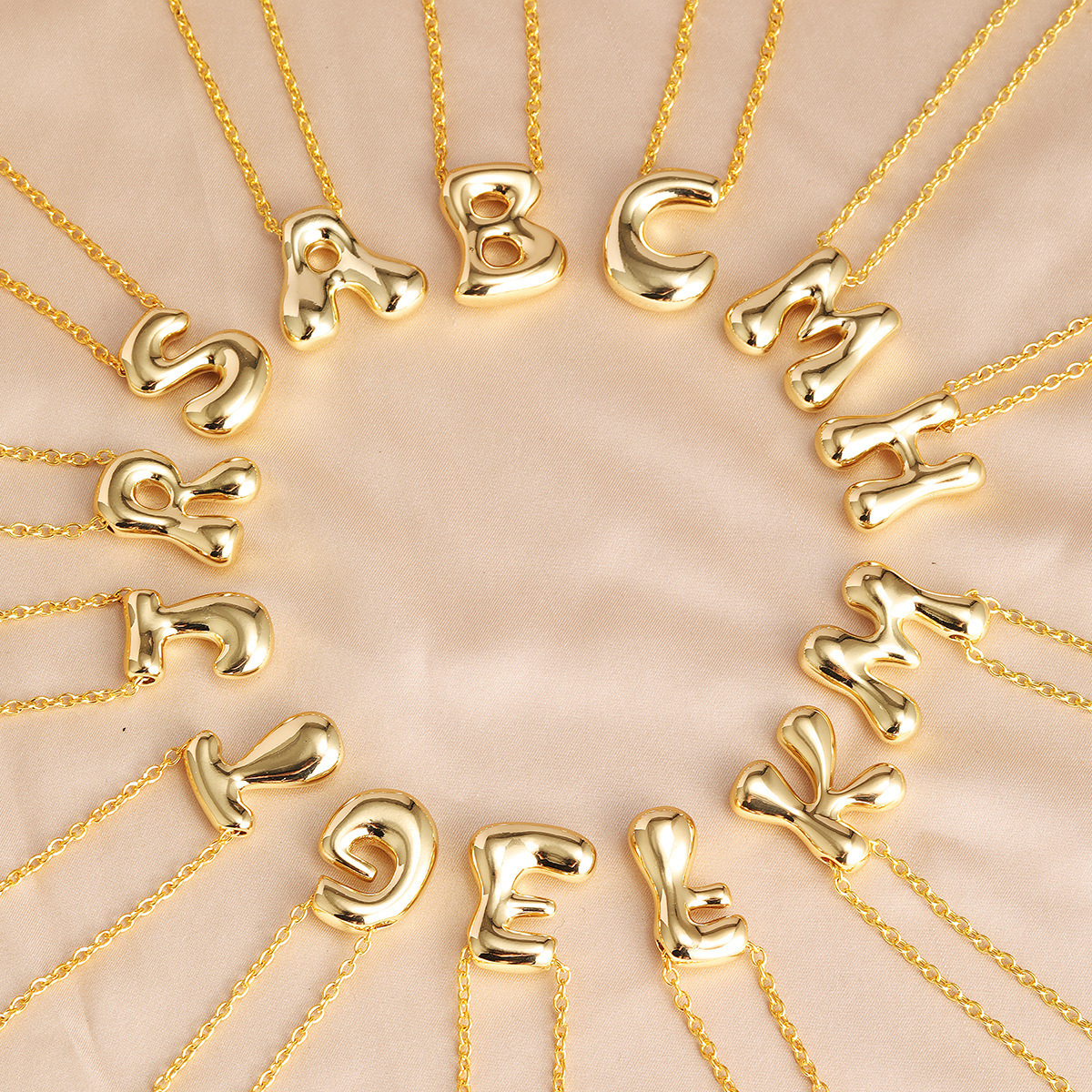 クロスボーダー電気メッキリアルゴールド銅光沢のあるバブルぽっちゃりかわいいQバージョン26英字ペンダントネックレスリング