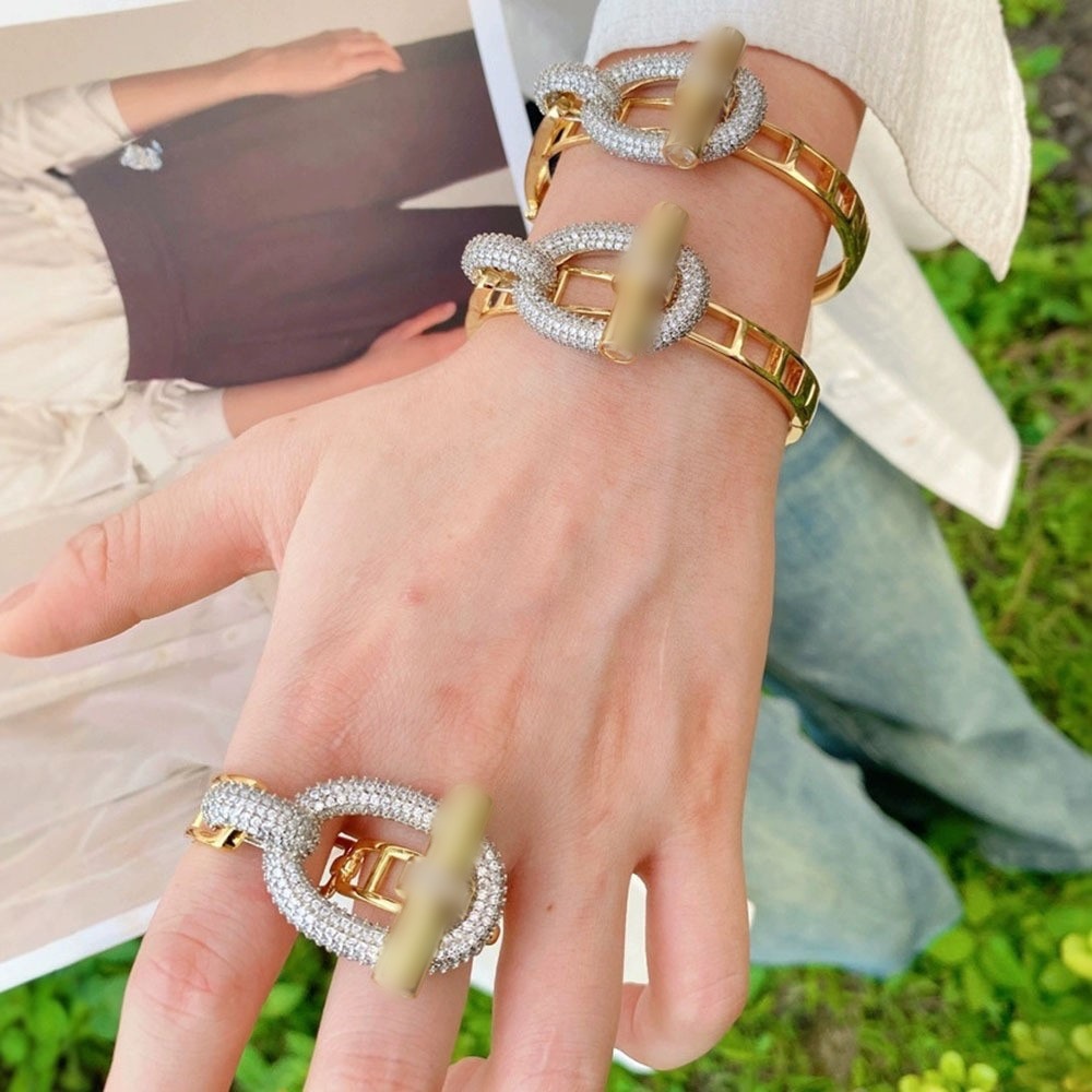 国境を越えた新しいクロスバーオットシリーズリングブレスレット銅象嵌ジルコンライト高級光沢のあるブレスレットリングソース工場