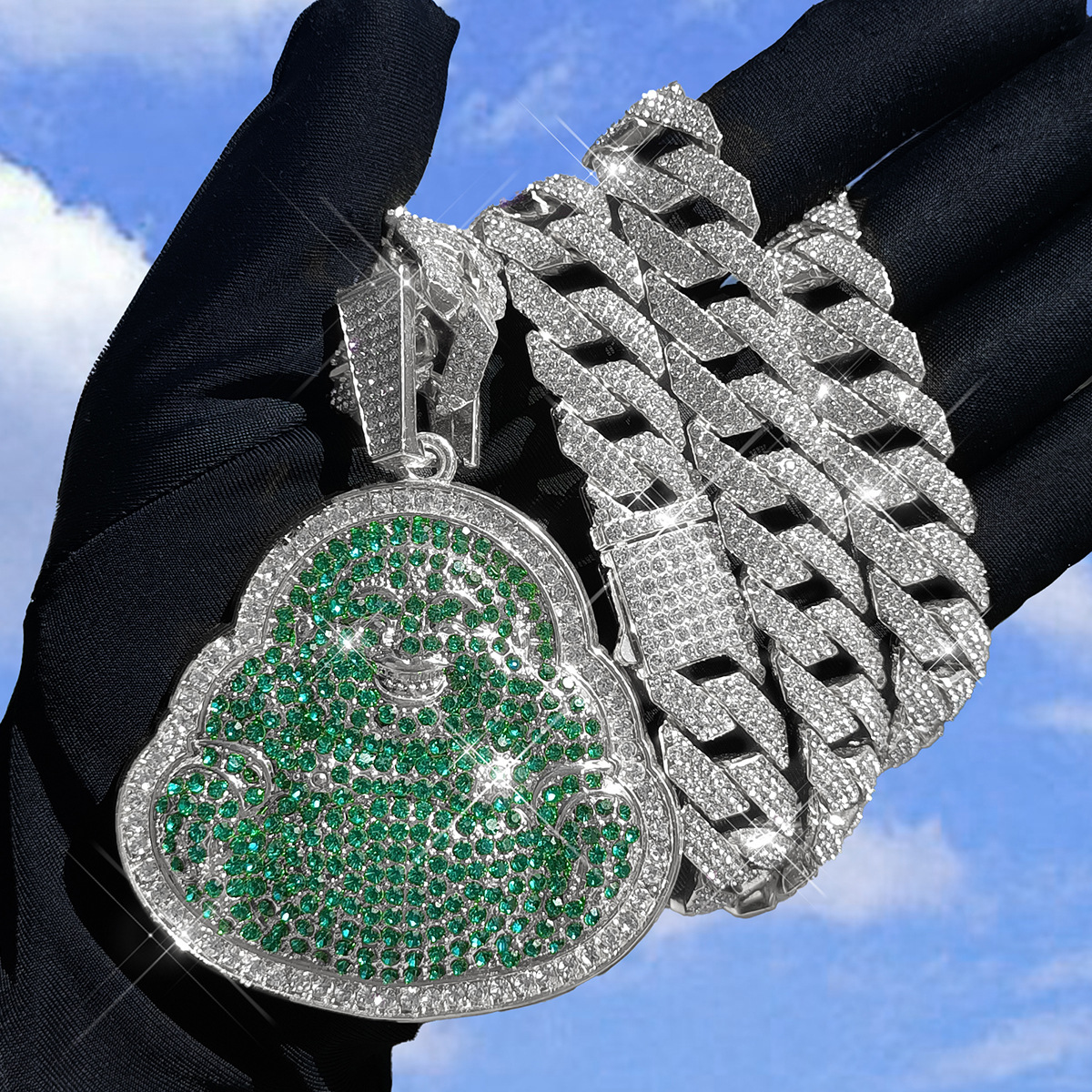 ヨーロッパとアメリカの笑顔仏合金フルダイヤモンドペンダントフルダイヤモンドパーソナライズされたレトロストリートメンズヒップホップネックレスは発送可能です