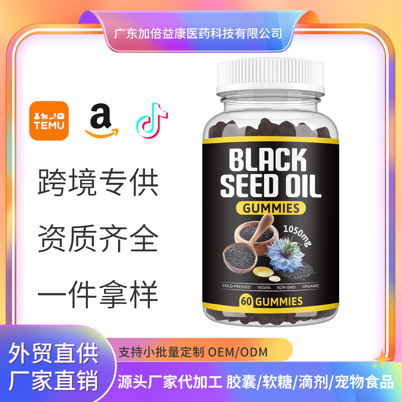 60粒黒シードオイルグミmaオイルグミ髪グミベアシェイプボトルボトルボトルブラックシードgummies