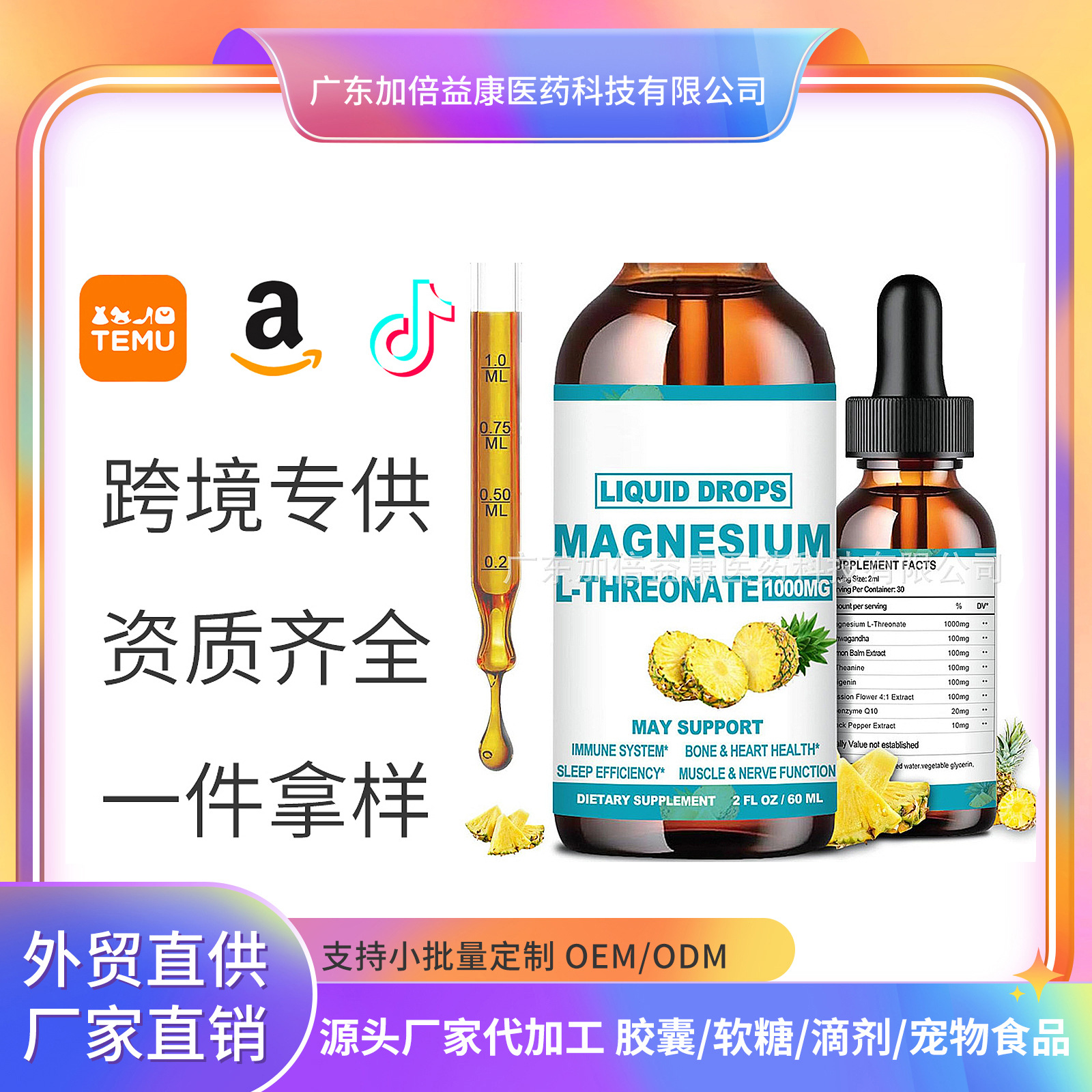 国境を越えたマグネシウム滴剤スレオニンマグネシウム代工MagnesiumL-threonate Drops睡眠免疫サポート