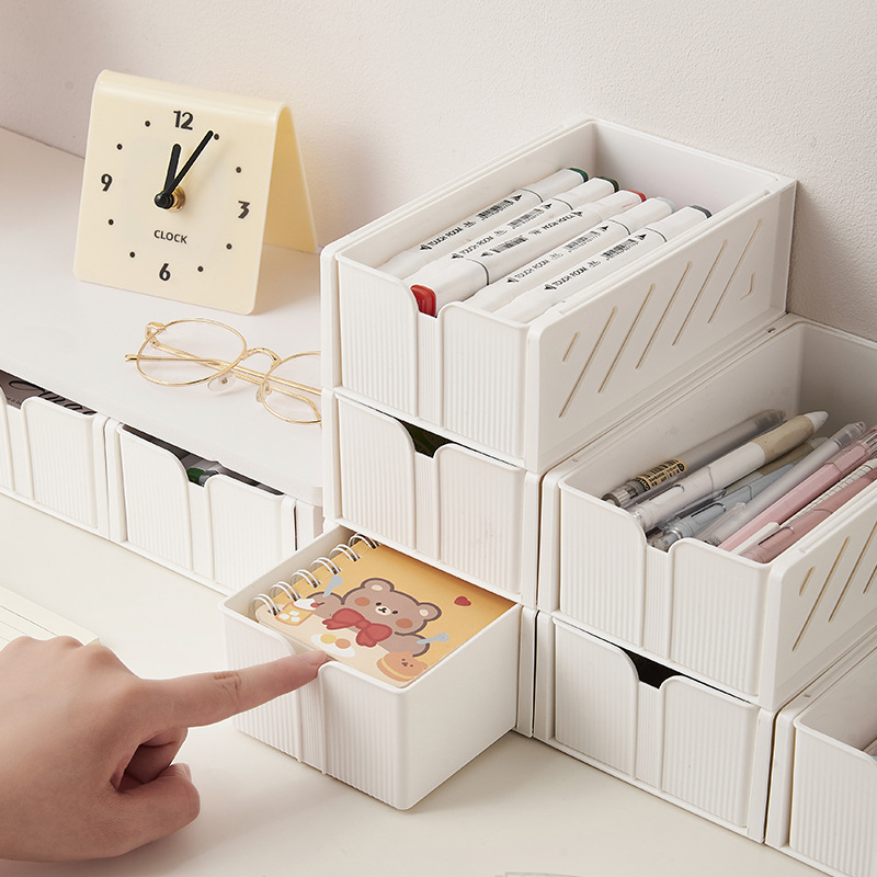デスクトップ学生文房具収納ボックス引き出し式化粧品口紅雑貨収納ボックス収納棚重ね収納可能