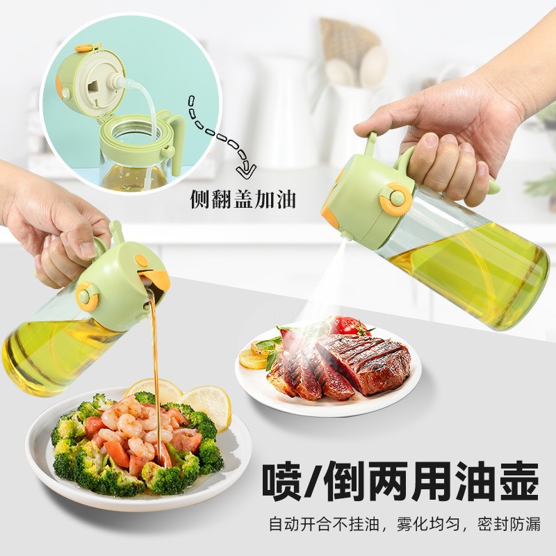 新しいガラススプレーと注ぐ両用オイルボトル、家庭用キッチンサイドオープンオイルスプレーと注ぐオールインワン霧化オイルボトルツーインワン