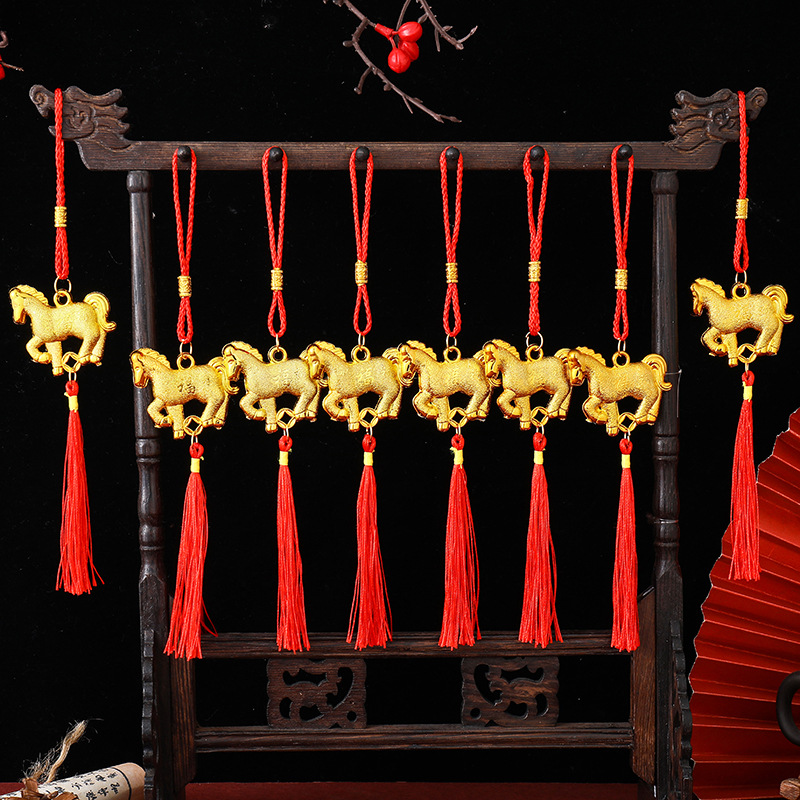 2026 年馬新年春祭り装飾新年新築祝いお祝い盆栽小さなペンダントゴールデン幸運屋内と屋外の装飾