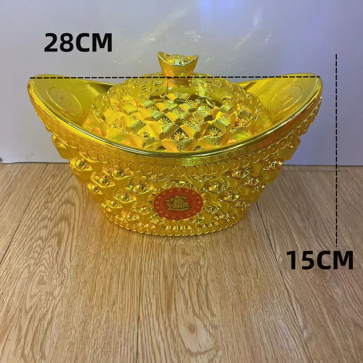 メーカー直販の金色の金メッキ元宝置物キャンディー箱舞台道具客間創意プラスチック金元宝金条
