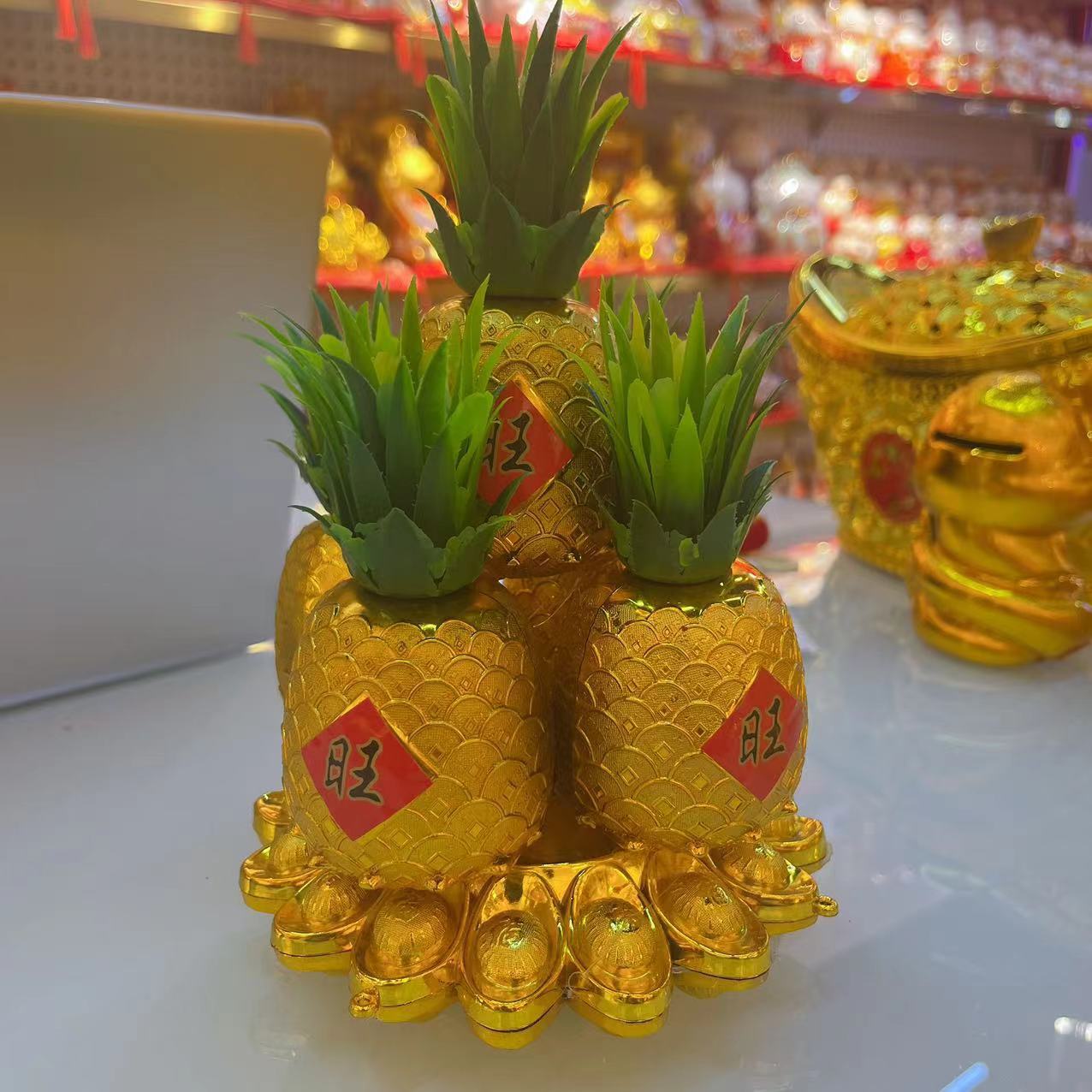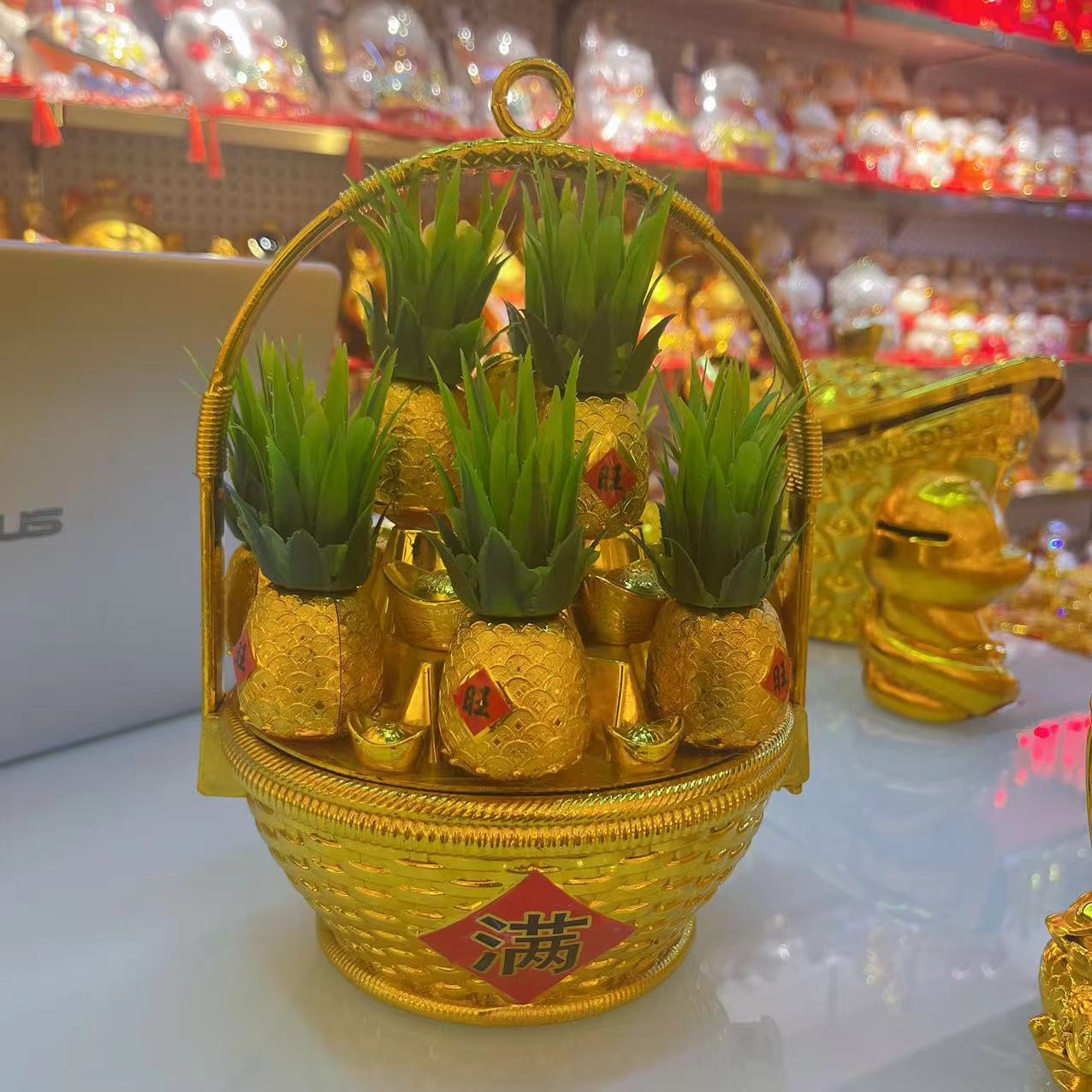 新花かごパイナップル一桶金招財プラスチック聚宝置物新年装飾聚財元宝招財猫喬迁