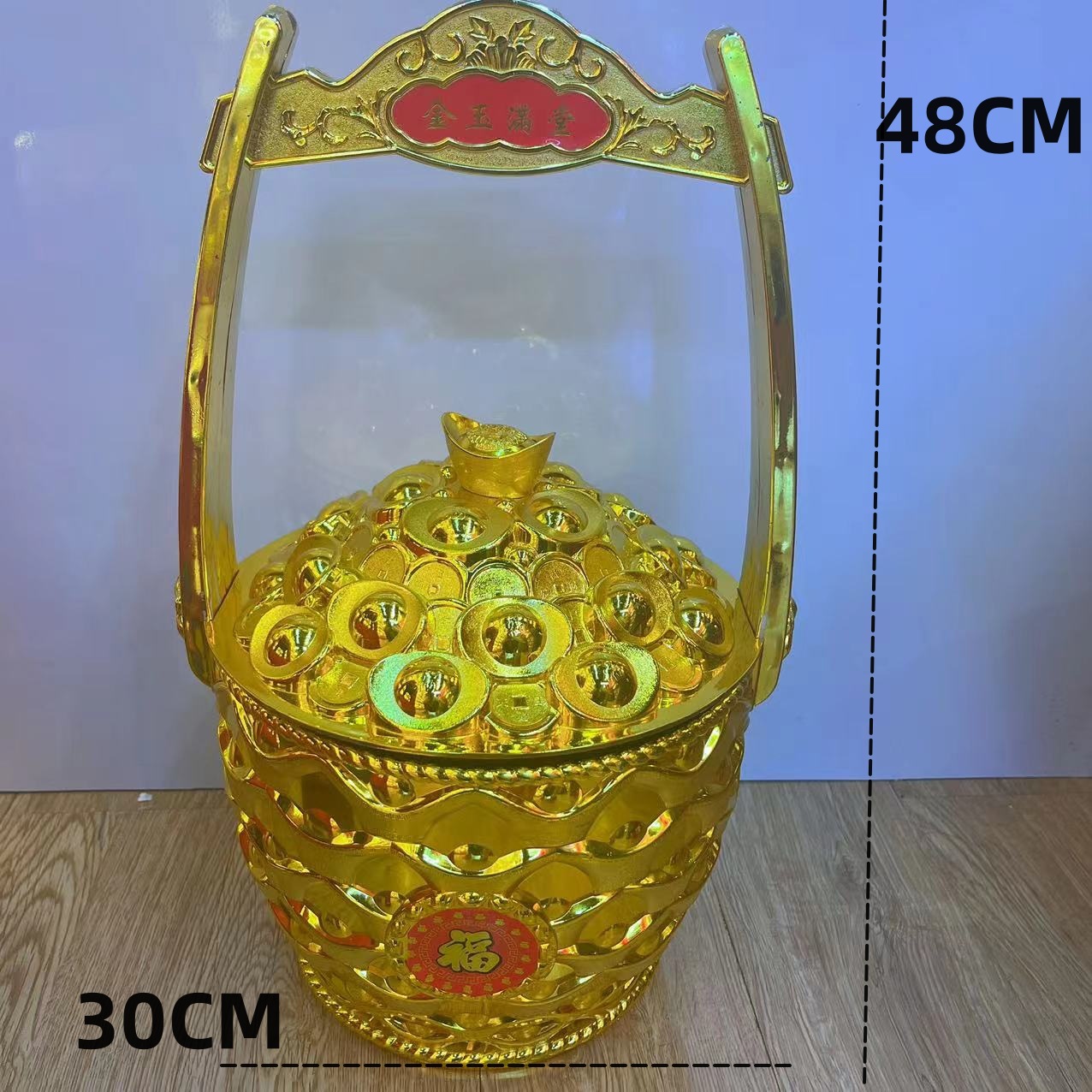 新花かご鳳梨一桶金招財プラスチック聚宝置物新年装飾聚財元宝招財猫喬迁