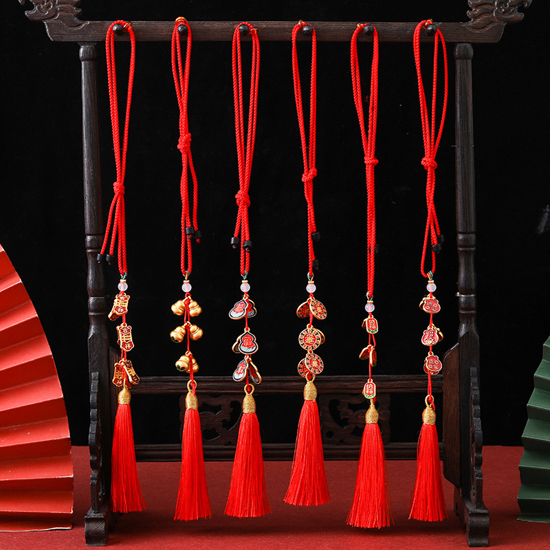 2025年新型中国式赤い糸球流蘇車載ストラップリビング装飾結婚室内室外装飾