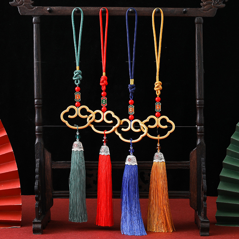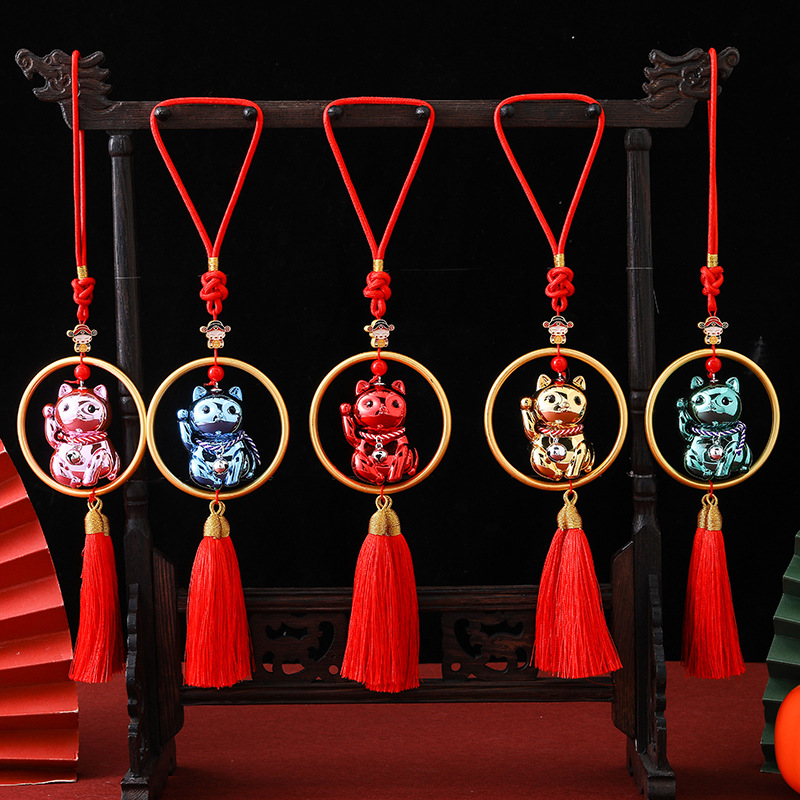 新型国風合金リングかわいい猫ペンダント自動車内装ペンダント古法中国結金フープフリンジペンダント