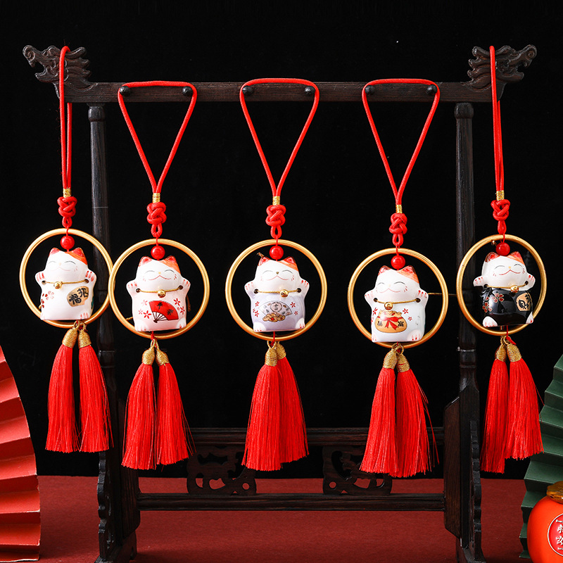 新品招き猫カーストラップ可愛いおしゃれ車載車用平安バックミラーペンダント掛けアクセサリー円形