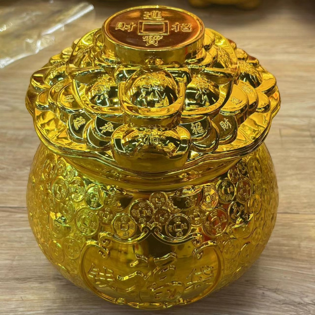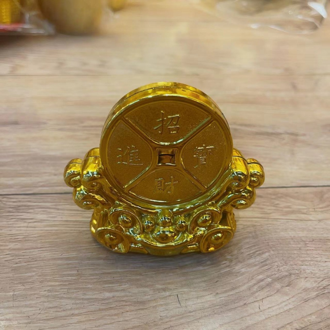金色のプラスチック招財進宝銅銭置物事務室創意デスクトップ納福日進闘金硬貨装飾品