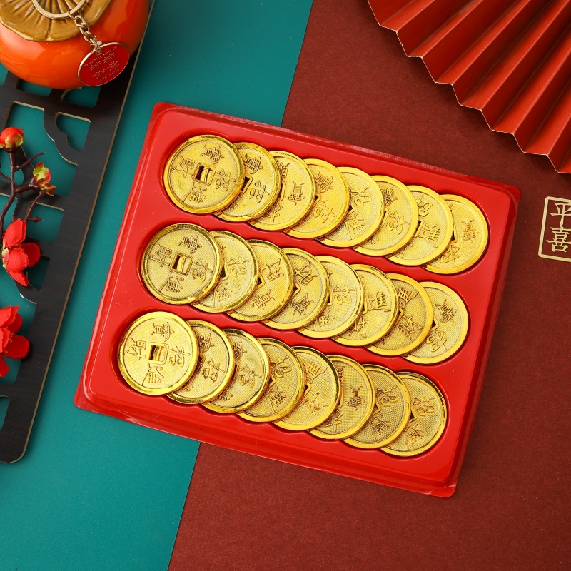 金メッキのプラスチックの金貨の祝い事の部品の中国は3.5cm箱を結びます。