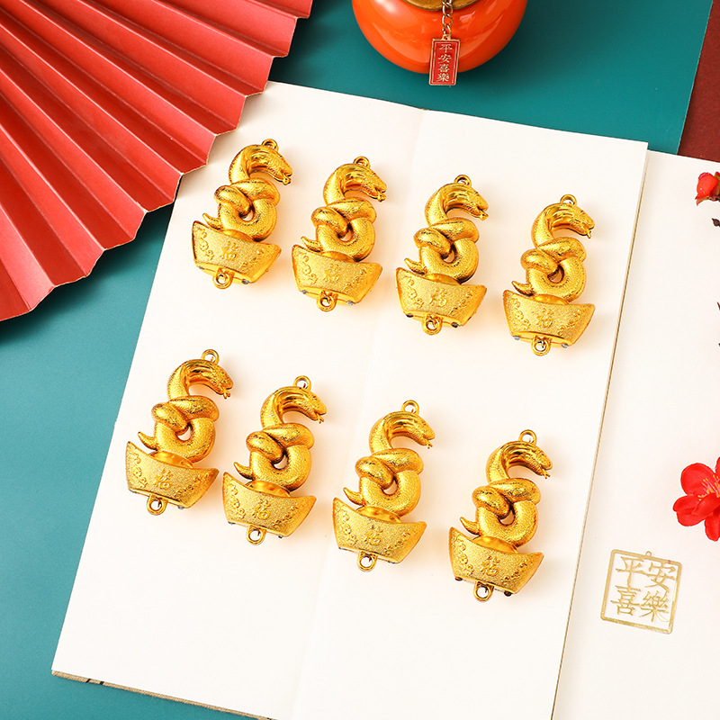 2025新型十二生肖蛇ストラップ金色元宝蛇おめでたいストラッププラスチック金メッキ旧正月装飾部品