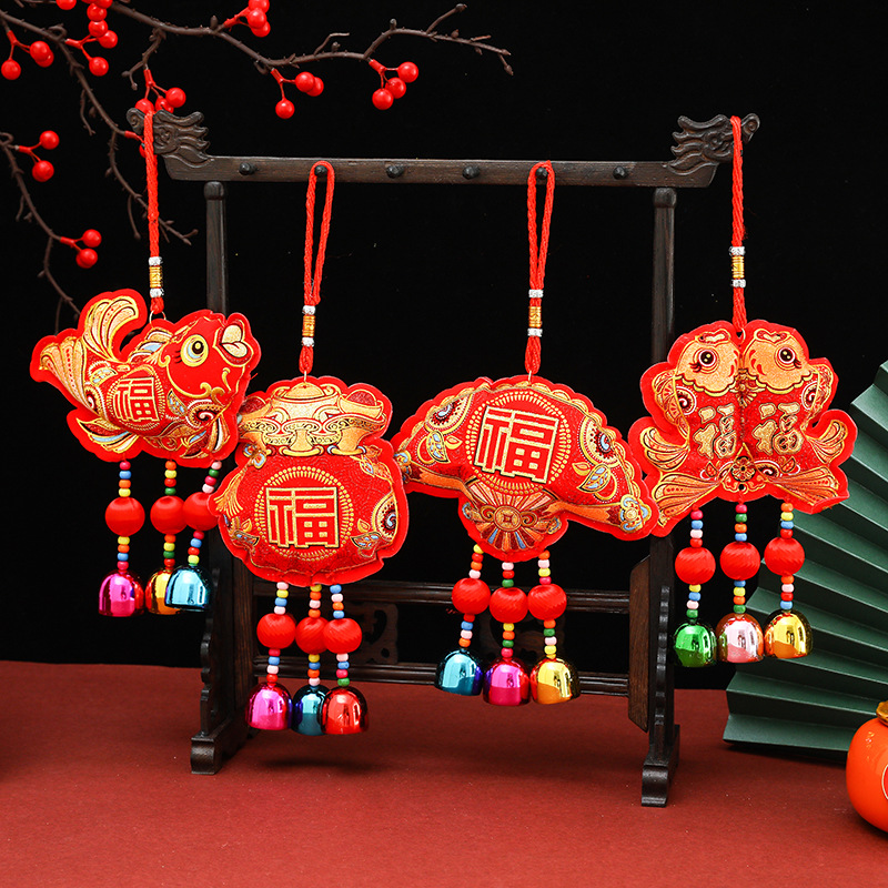 2024龍年新年元旦装飾用品魚唐辛子鞭砲串年物新年祝い飾りストラップ