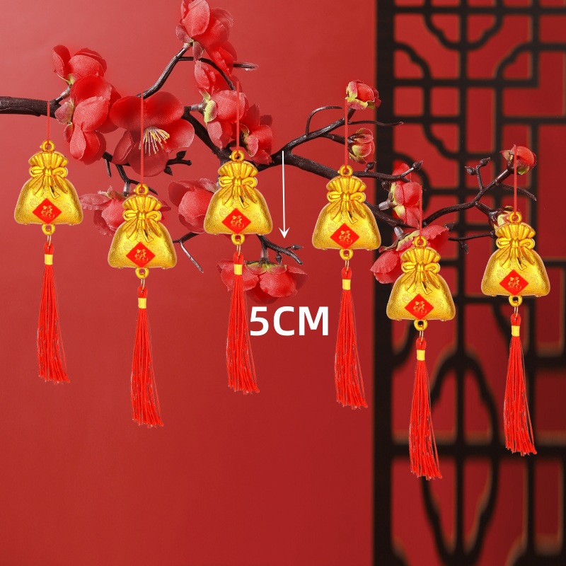 2024年新年盆栽銭袋金メッキペンダント盆栽緑植福字シーン装飾品移転プレゼント掛け飾り