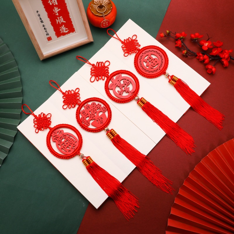 トランペット中国結び手作りペンダント飾り提灯緑植小吊穂旧正月のお祝い大赤色流蘇穂子