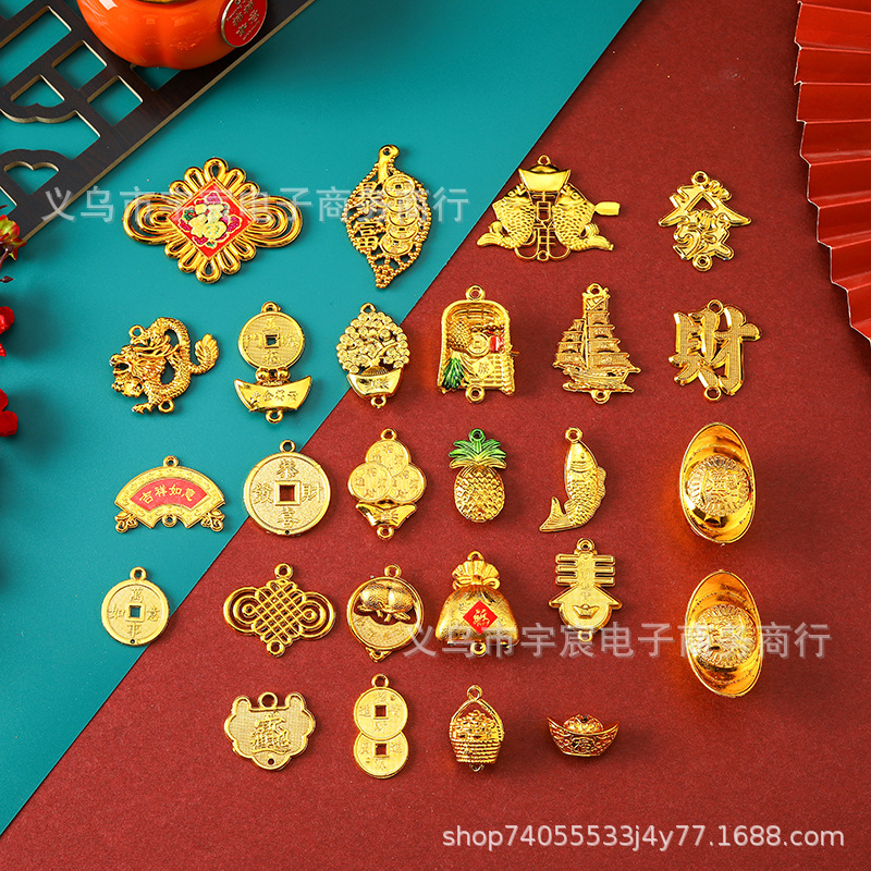 202蛇年春節小金元宝福袋財神爺部品金メッキ招財中国結部品装飾入宝