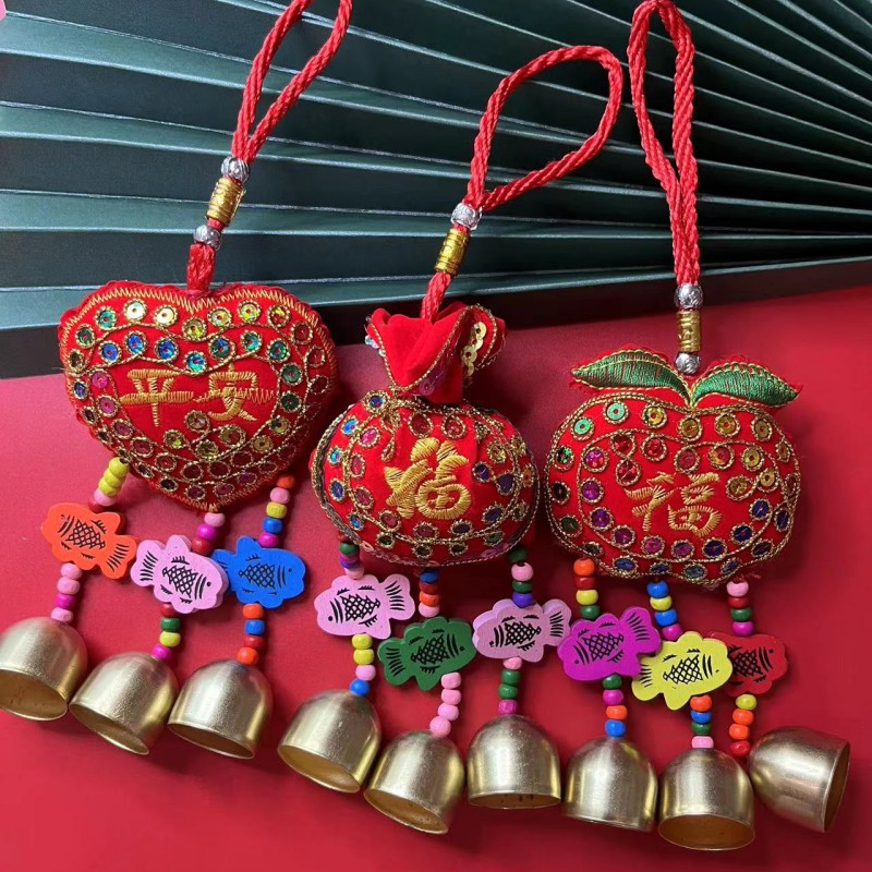 新年の民族風刺繍風鈴のペンダント