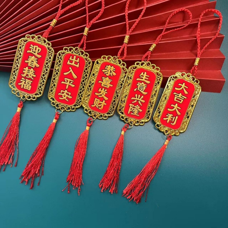盆栽の小さいペンダントは元旦に移転しました。室内装飾金箔植毛家庭用春節花樹自動車は平安福を飾ります。