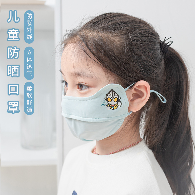 新型アニメ児童日焼け止めマスクネット赤立体通気氷糸マスク夏薄手学生マスク卸売り