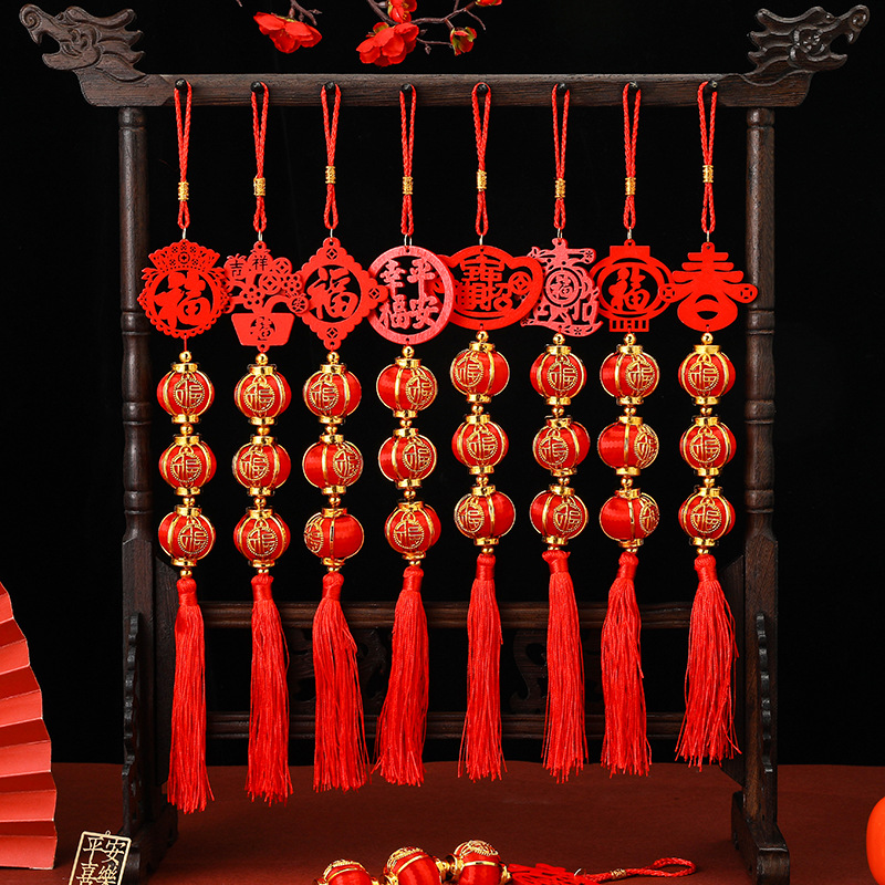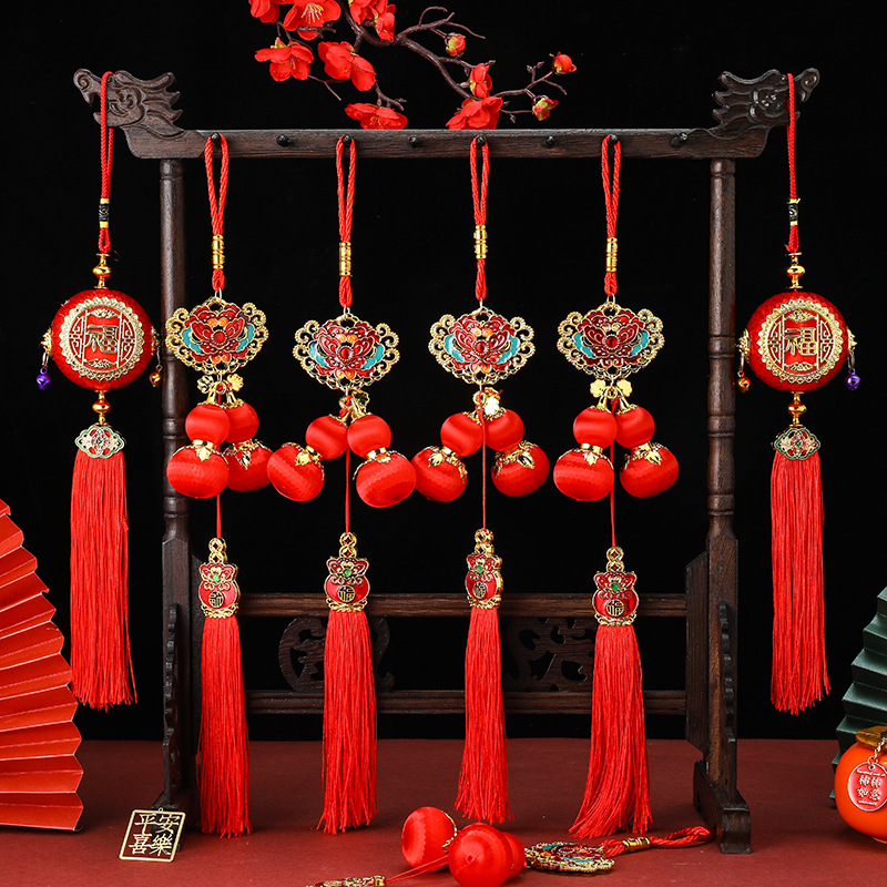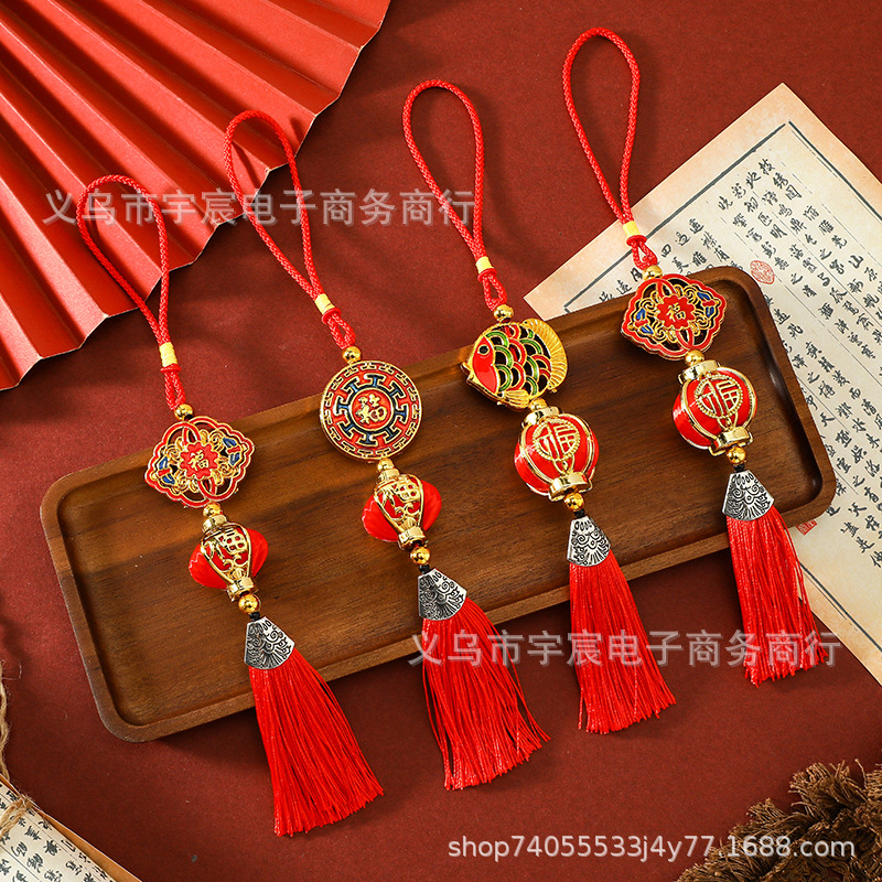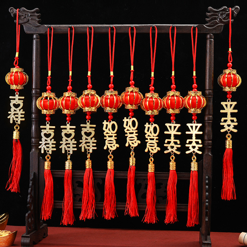 2025年新年の装飾品赤いシルクの小さな灯籠玉のストラップ