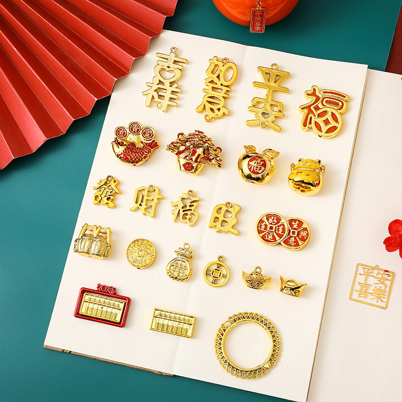 金メッキの硬貨のそろばんの部品のペンダントのお祝いの日の引っ越しの引っ越しの車のdiyの緑の植のペンダントの部品