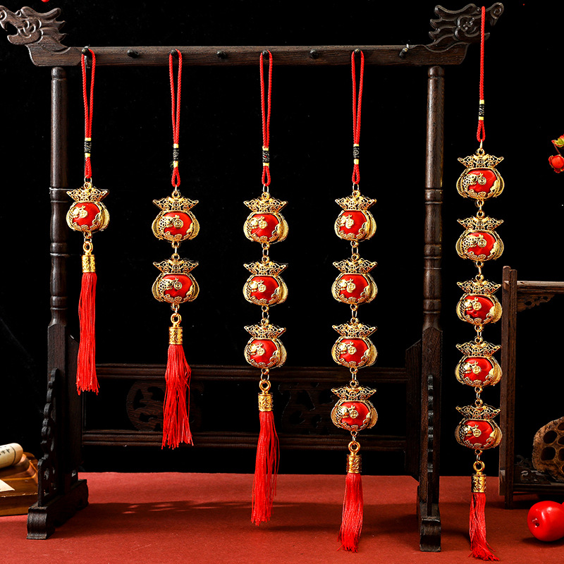 2026年シルク光線吉祥葫芦春節新築祝いお祝い小提灯吊り飾り赤い小葫芦五帝銭吊り飾り