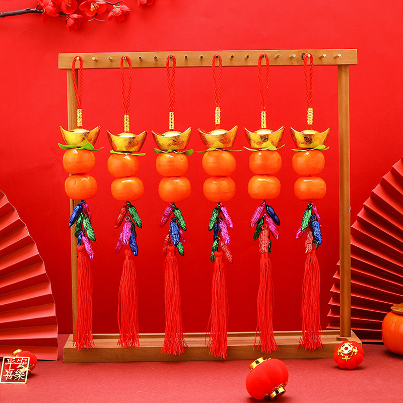 新年の金色の元宝のみかんの色の落花生の小さい掛け物は新しい部屋の植物の盆栽に引っ越してお祝いの用品の卸売りを飾ります。