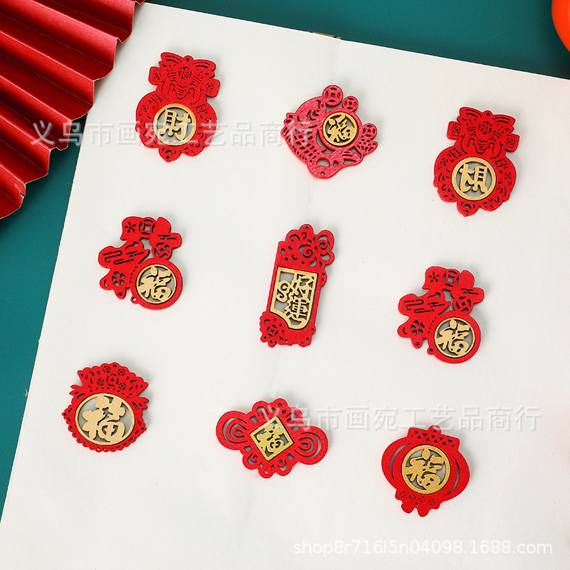 木の透かし彫りの祝福の文字の札の楕円体の大きい赤色の平安の吉祥の木の切れの個性のアクセサリのペンダントDIYの部品