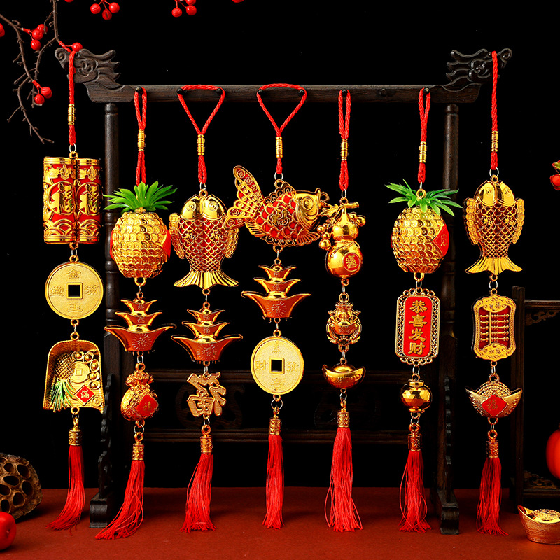 旧正月のペンダント植物盆栽は旧正月の銅銭ひょうたん部屋の旧正月のお祝いのペンダント用品の装飾を飾った