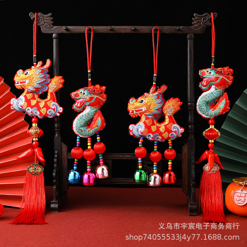 2024龍年香包風鈴中国風刺繍風鈴ペンダント福袋香嚢亮片鈴自動車ペンダント