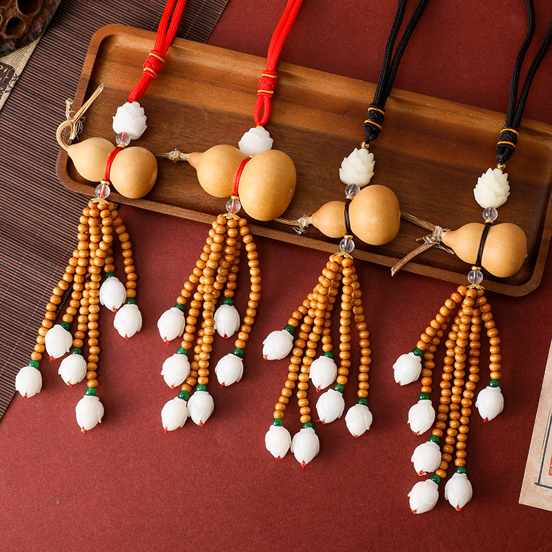 創意木珠天然瓢箪車内装飾バックミラー玉蓮花ペンダント自動車装飾平安ペンダント