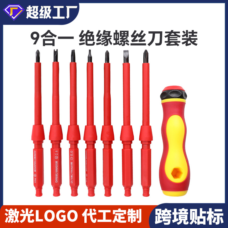 9合1電気工絶縁ドライバーセット多用途電気通信両用専用異形修理工具ドライバーセット