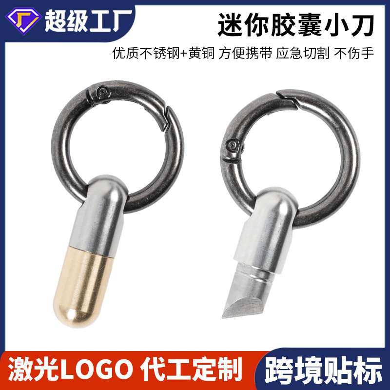 カプセルナイフ、マイクロ切削工具、箱開けツール、錠剤分割、速達開封、缶切り、キーホルダー