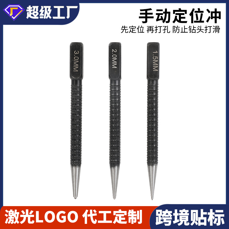 手動位置決めパンチングポジショナー丸型サンプルパンチ釘パンチングセンターパンチ3本セットブラック1.5/2/3mm