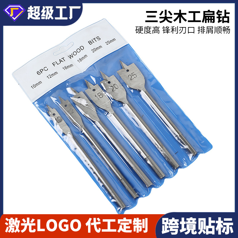 メーカー 三尖木工 6本天然色フラットドリル 六角ハンドル木工穴開けセット フラットドリル 木板穴開け