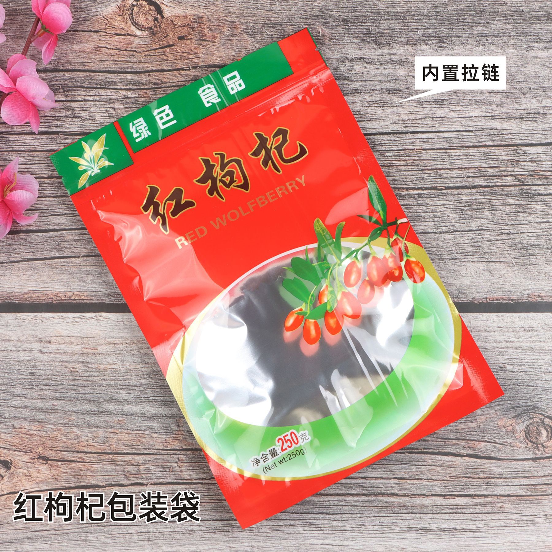 緑の新しいクコの包装袋の透明な礼袋のファスナーは口の赤いクコのビニール袋の500グラムの250グラムを密封します。