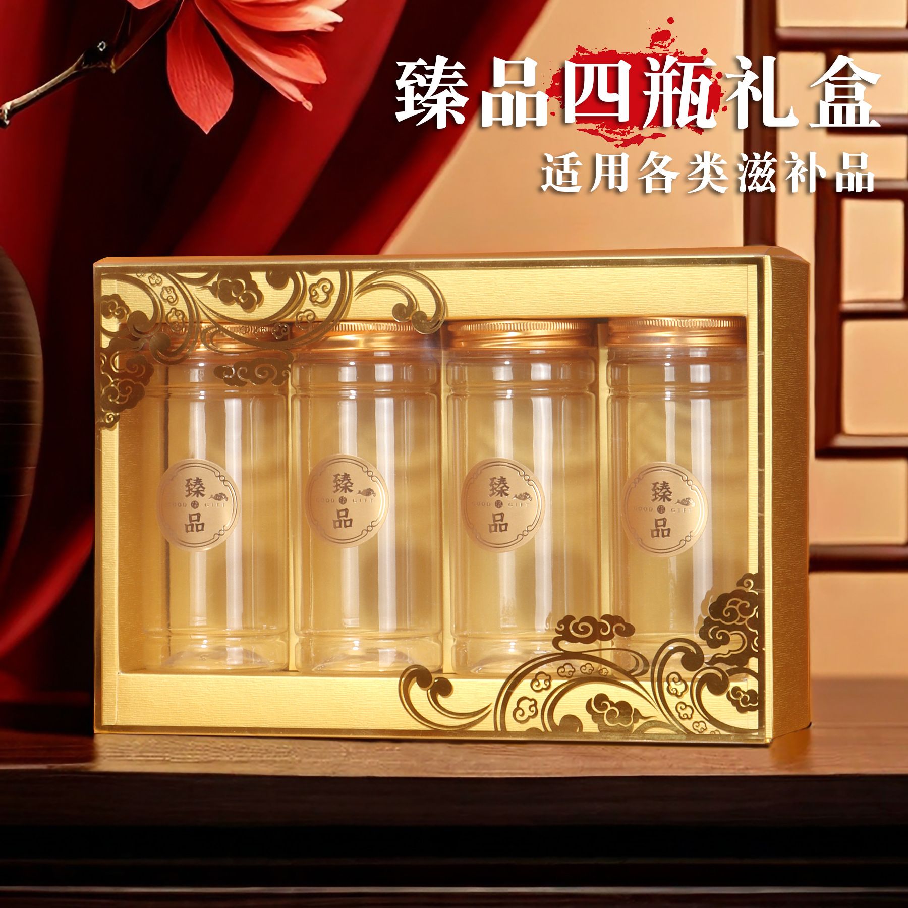 至品四本包装箱西洋参陳皮羊腹菌透明ギフトボックス大容量金色箔押しボックス