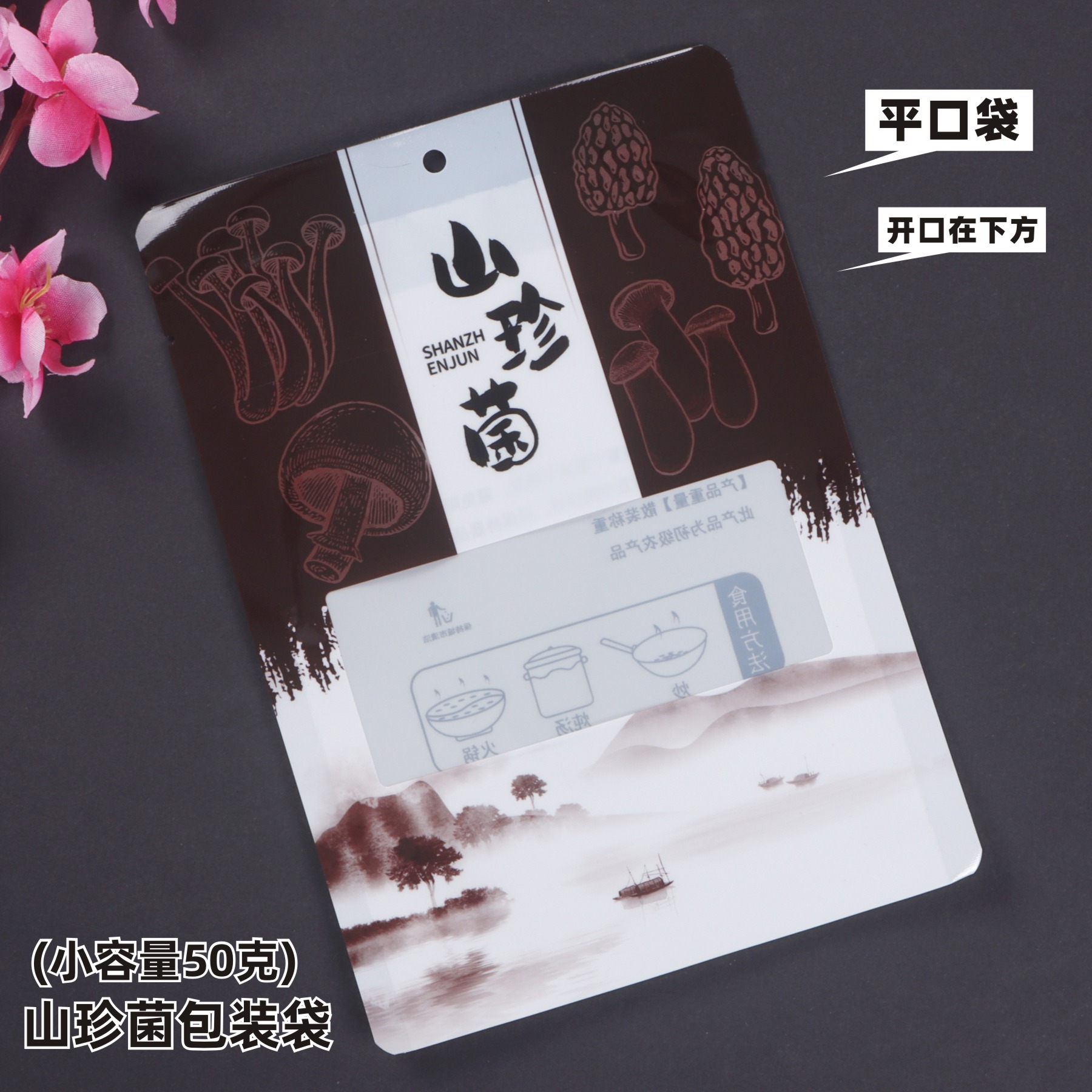 山の恵みキノコ小容量包装袋フラットポケットアミガサタケ鹿角キノコ椎茸松茸乾物透明袋50g