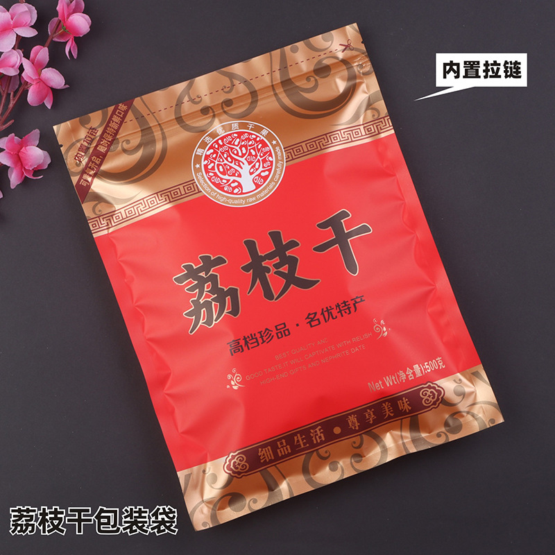 乾燥ライチ包装袋、乾燥リュウガン袋、ドライフルーツ、乾物食品ジップロック袋、密封袋、ジッパー袋、ビニール袋500g