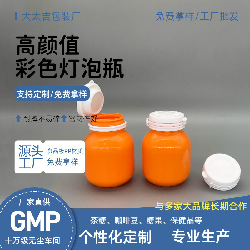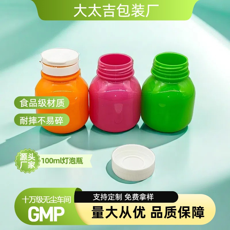 スポット食品級100ml引き裂き蓋カラーキシリトールガム瓶PET密封保健品電球瓶