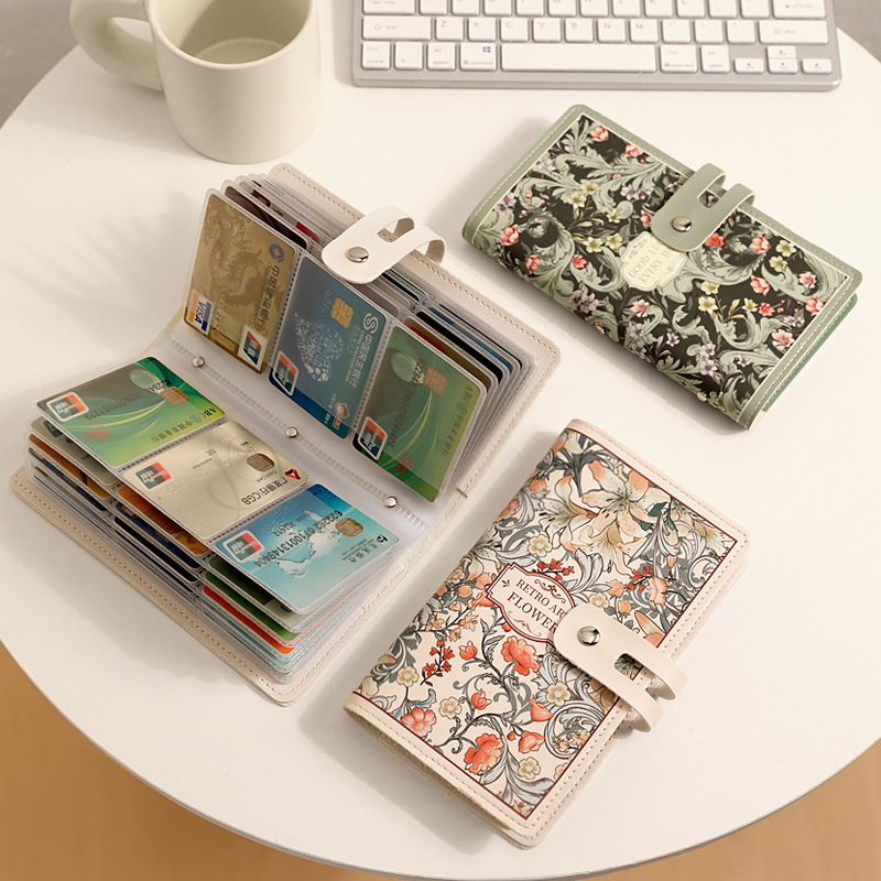 新しい花柄油絵カードホルダー、女性用アクセスカード、レトロ風、複数カードスロット、銀行カード、IDカード、大容量カードホルダー
