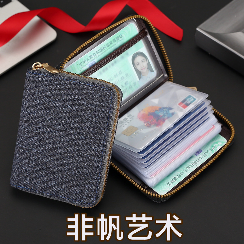 多机能ファスナー大容量カードかばん男性用女性用マルチカード位クレジットカードカバー名刺入れ身分证明书付き财布一体型かばん