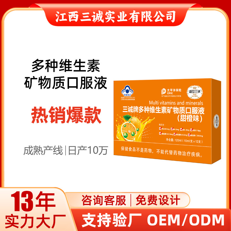 Shengshi Sancheng マルチビタミン ミネラル経口液体オレンジ ジュース青少年と大人のための本物の経口液体